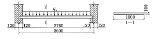 某简支在砖墙上的现浇钢筋混凝土平板(图2-13),板厚h=100mm,as=20mm。 若题(1)中其他条件不变,跨中最大弯矩设计值M=3.28kN·m,则As接近于()mm2。