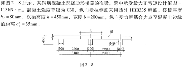 若已知次梁的计算跨度l0=6m,间距为2.4m,净距sn=2.2m,如图2-8所示,则翼缘的计算宽度b'f最接近于()mm。