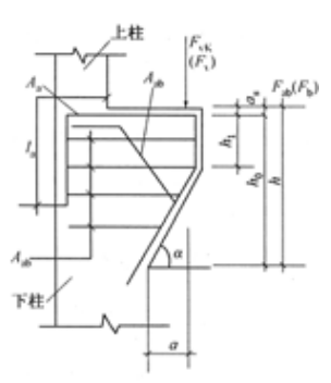 支承屋面梁的柱牛腿,如图所示,宽度b=400mm,屋架在牛腿上的支承长度为200mm,竖向力作用点到下柱边缘的水平距离a=300mm(已考虑安装偏差20mm),外边缘高h1=h/3(九为牛腿高度),牛腿底面倾斜角α=45°。作用在牛腿顶部按荷载效应标准组合计算的竖向力Fvk=450kN,竖向力的设计值Fv=580kN,同时作用在牛腿顶部按荷载效应标准组合计算的水平拉力Fhk=120kN,水平拉力的设计值Fh=168kN,混凝土强度等级采用C30,钢筋HRB335级,as=40mm,箍筋为HPB235级钢筋。
