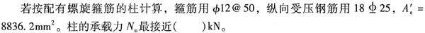 圆形截面轴心受压柱,直径d=500mm,计算长度l0=5200mm。受轴心压力设计值N=4500kN,混凝土强度等级为C30,纵筋用HRB335级钢筋,箍筋用HPB235级钢筋。