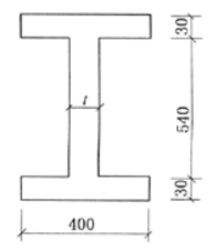 某高层钢结构,按8度抗震设防。结构设中心支撑,支撑斜杆钢材采用Q345(fy=325N/mm2),构件横断面如图6-7所示。则满足腹板宽厚比要求的腹板厚度t最接近于()mm。提示:按《高层民用建筑钢结构技术规程》(JGJ99-98)设计。