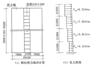 某建造于大城市市区的28层公寓,采用钢筋混凝土剪力墙结构体系。平面为矩形,共6个开间,横向剪力墙间距为8.1m,其中间的剪力墙的计算简图如图所示。在风荷载(标准值)作用下,试采用近似分析方法(将两个墙肢视为一拉一压,且其合力作用在墙肢的中心线上),估算每根连梁的平均支座弯矩设计值Mb最接近于()kN·m。