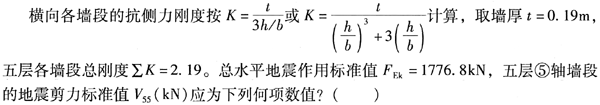 已知各层的计算高度和各层的重力代表值(1.0静载+0.5活载)如表4-3所示。三层的地震作用标准值F3(kN)与下列何项数值相接近()