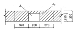 一钢筋混凝土柱截面尺寸为250mm×250mm,支承在370mm宽的条形砖基础上,作用位置如图所示。砖基础用MU10烧结普通砖和M5水泥砂浆砌筑,柱传至基础上的荷载设计值为150kN。要求确定柱下基础砌体的局部受压承载力关系式中右端项γfAl最接近于()kN。