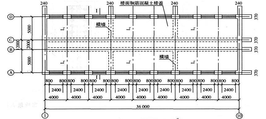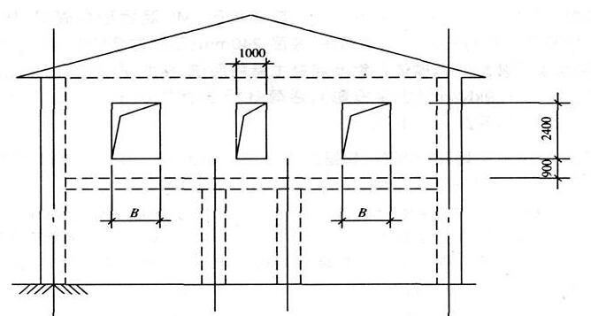 某建筑物如图13所示。墙体采用MU10普通砌砖,M5混合砂浆砌筑,纵墙厚度为370mm。山墙及底层每隔三开间有道横墙,厚度240mm,二层为全空旷房间(无内横墙及内纵墙)。屋面采用装配式有檩体钢筋混凝土屋盖系统。楼面采用装配式梁板结构。屋面恒荷载标准值为1.9kN/m2(水平投影),活荷载标准值为0.5kN/m2。基本风压值为0.35kN/m2,高度变化系数μz=1.0。