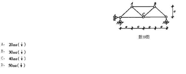 <p>图示桥架杆件的线膨胀系数为α,当下弦杆件温度升高20℃时,结点B的竖向位移为( )。 <img alt="" src=