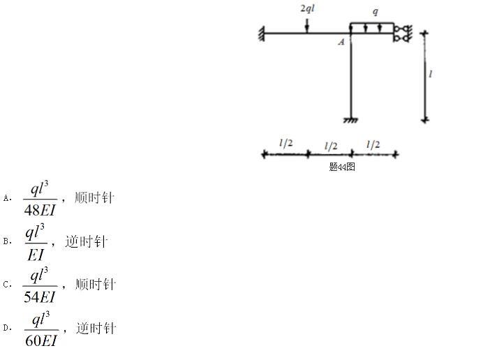 <p>图示刚架,EI=常数,结点A的转角是( )。(提示:利用转动刚度的概念) <img alt="" src="https