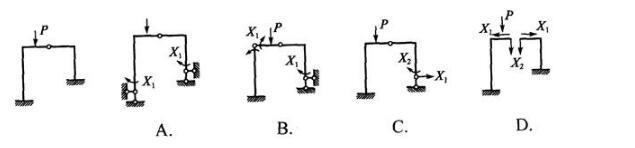 图示为两次超静定结构,下列图中作为力法的基本结构求解过程最简便的是( )。