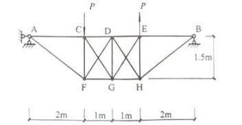 <p>图示组合结构,梁AB的抗弯刚度为EI,二力杆的抗拉刚度都为EA。DG杆的轴力为( )。 <img alt="" src