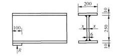 图示为一般焊接工字形钢梁支座,支承长度a=100mm,钢材为Q235- B. F,计算支座反力R≤( )kN时才满足局部压应力的要求。
