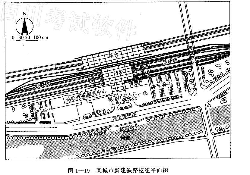 图1一19所示为某城市新建铁路枢纽——火车站及广场总平面交通流线组织。分析该大型交通设施规划设计中的不妥之处。