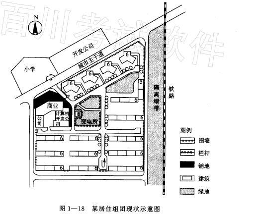 某居住组团已建成入住(现状示意图如图1一18所示)。 请指出该居住组团规划在环境、交通及安全方面存在的主要问题。