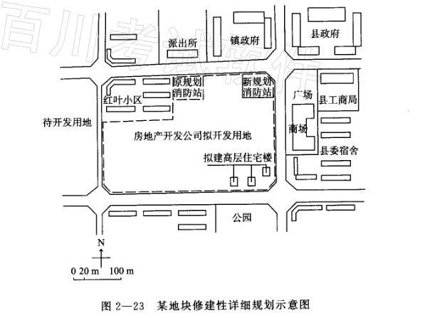 某县级市为发展当地经济,拟出让县政府所在镇中心区的一块规划建设用地的土地使用权,该市规划行政主管部门依据镇中心区的控制性详细规划提出了规划条件,如图2—23所示。