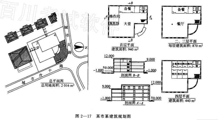 某拟建项目位于某市风貌建筑保护街区内的城市次干道与城市支路的交口处,总用地面积为2016m2,用地性质为办公建筑,除按有关规范规定的要求外,还提出以下规划条件,即:建筑限高12m,容积率不大于1.4,建筑密度不大于35%;建筑间距应满足:南北向大于新建建筑高度的1.5倍,东西向大于新建建筑高度的1.2倍;建筑风格要求与周边现有建筑相协调,屋顶须采用坡屋顶形式。图2—17为该建筑规划图。请你对图示方案进行审核,指出存在的问题。