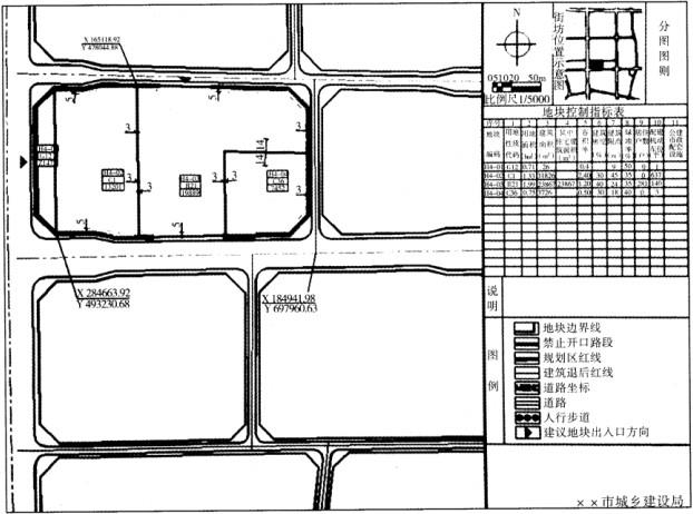 以下为××市城乡建设局做出的某地块规划图。