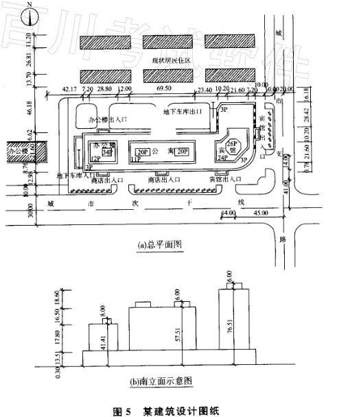 某北方城市拟在市中心地段新建一集公寓、办公、宾馆、商业为一体的综合性建筑。用地朝向为南偏东13°,用地情况如下: