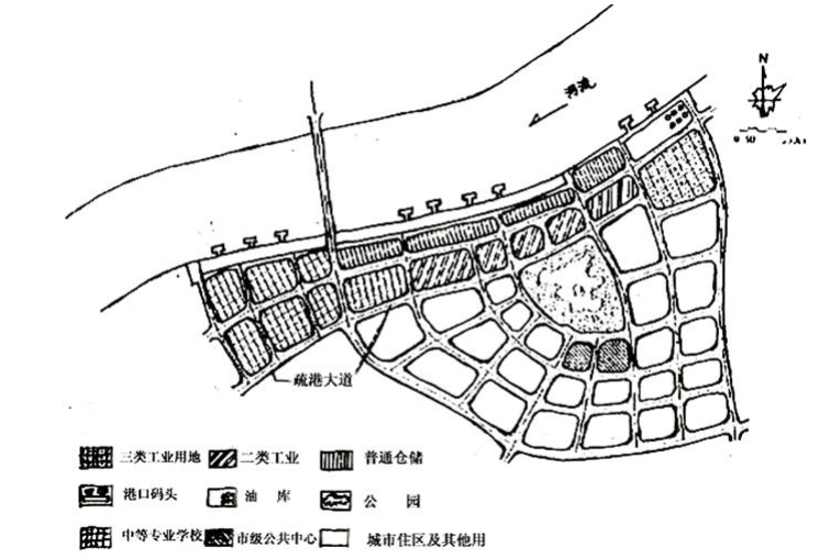某单位编制了一滨河新城(中等城市规模)总体规划方案(见图1),报有关部门征求意见,经审查发现,有些问题应当加以改正。