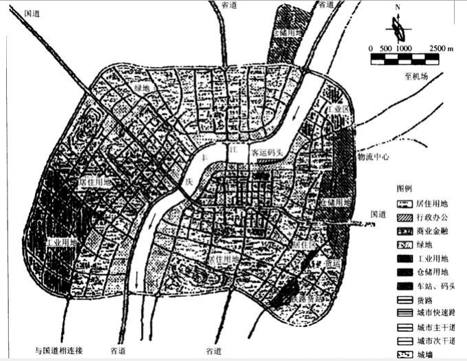 图2为一座市区人口规模70万的大城市市区总体规划示意图。