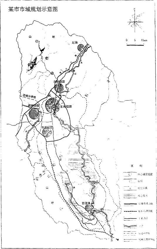我国某地区中心城市,自然山水景观丰富,是著名的风景旅游城市和国家历史文化名城。该市有东江、西江两条河流,东江源于市域的北部山区且贯穿南北,其南段是景点集中分布的风景河段;西江的部分河段流经市域西部。该市中心城区城市总体布局分为4个组团,在主城组团内亦有众多风景名胜和文物古迹。