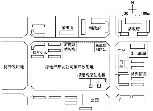 1.将用地内原规划安排在西北角的消防站调整到用地东北角。