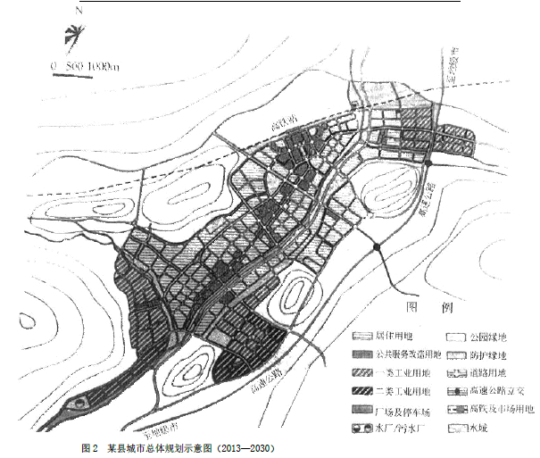 图2 某县城市总体规划示意图(2013—2030)
