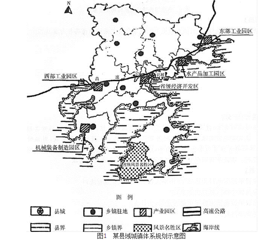 我国南方沿海某县,西北部为山区,中部为丘陵,东南部有少量平原缓丘及大面积海湾。海岸线长,海产资源丰富。南部半岛上有一处省级风景名胜区。该县近海海域是重要的海洋集聚区及生态环境高度敏感区域。该县在省级主体功能区规划中被确定为限制开发区。县域现状总人口为48万人,其中县城城区人口为12万人。该县现状工业基础薄弱,第三产业以传统服务业为主,近几年,县里为提高经济实力,增加税收,大力发展第二产业,除保留原有的省级经济开发区外,新建东部工业园区及西部工业园区(位置如图1所示)。另外,政府还拟引进重大石化项目。