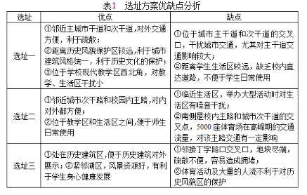 某市政府拟出资与所辖某百年名校在校内共建一处兼具城市功能的5000座体育馆。该校位于城市中心区,校区东南两侧为城市湖泊及支路,其北侧紧邻城市主干道,西侧为城市次干道。该校用地布置说明:北为教学区,南为生活区,其校区东部环境良好,大部分建筑为国家和西方建设,该单位及优秀历史建筑已被该市公布为历史风貌保护区。校区西部为上世纪70年代后所拓展区域,该校现为新建体育馆提出了三处选址方案(详见图5)。