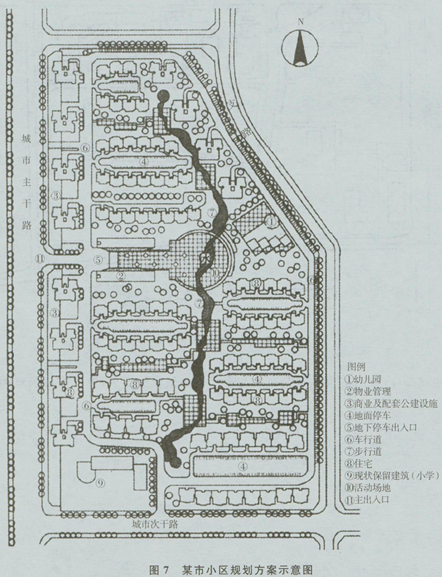 某市在城市主干路东侧一块平坦的空地上,拟建一个小区,规划实施方案如图7所示。