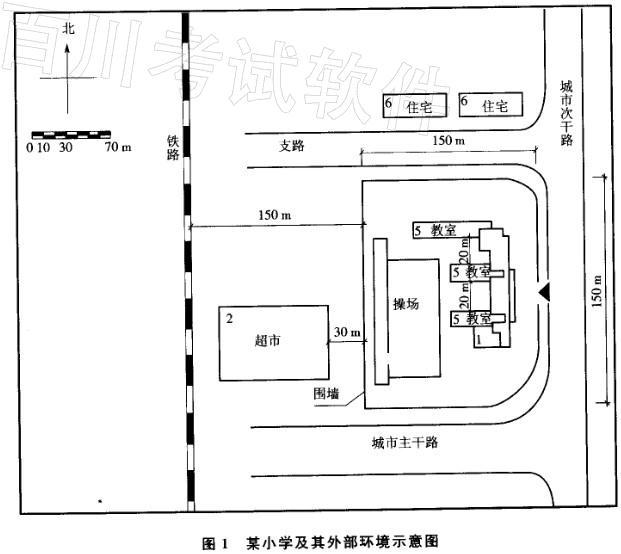 图1所示为某市市区边缘地段拟建的一所18班小学,请指出该小学在选址和总平面布置中存在的主要问题。
