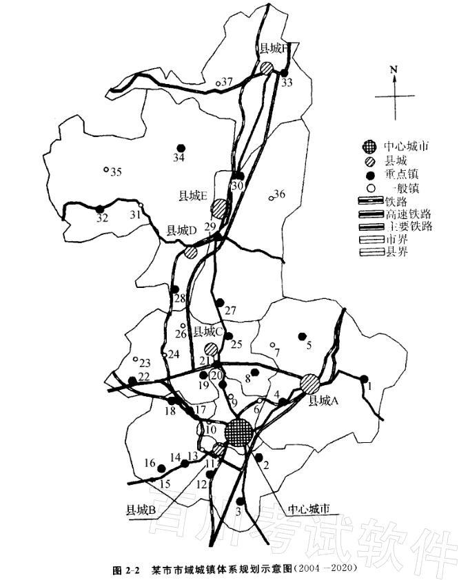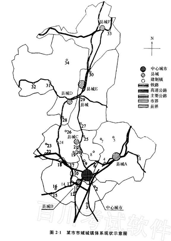 我国西南地区某地级市,其南部为丘陵,北部为山区,山区经济以农林为主。受地形条件影响,城镇主要集中在南部和中部地带,市域城镇化水平在35%左右,市域内现有大城市1个,县城6个,其他建制镇34个,规划为求市域内城镇均衡发展,在北部地区新设3个镇,市域交通规模基本符合发展要求。