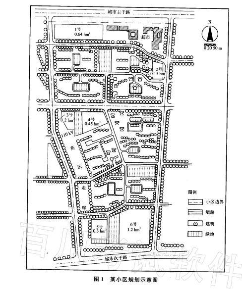 某市在市区内拟建一个居住小区。规划方案将该小区确定为集中建设多层住宅。小区内规划公共建筑设施比较齐全,交通方便。小区南北分别为城市主次干道,西侧有110kV的高压走廊,东邻居住用地,北边尚有空地。小区总用地21hm2,规划总建筑面积29.4万平方米。示意图(如图1所示)中除居住组团外,尚需要布置的小区公共建筑有:小学1所、托儿所2所(其中一所8个班,一所6个班)、工业企业办公楼1栋以及小区变电所。