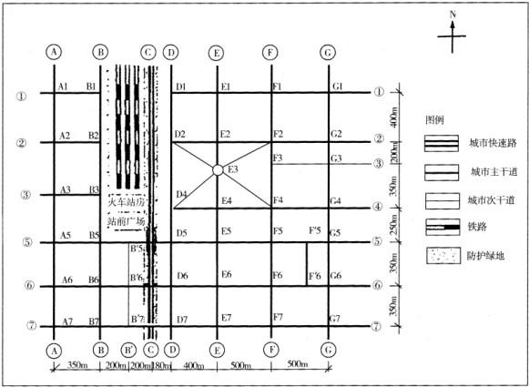 所示为某城市火车站地区局部的道路网布局方案示意。(