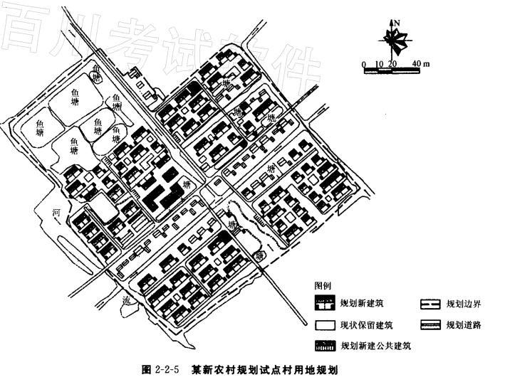 某村为新农村规划建设试点村。该村地势平坦,水系丰富,总用地面积为13.6ha。用地现状图和规划图分别如图2-2-4和图2-2-5所示。 试评述该规划的主要优缺点