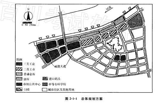 某单位编制了一滨河新城(中等城市规模)总体规划方案(图2-1-1),报有关部门征求意见,经审查发现,有些问题应当加以改正。试指出方案中存在的问题,并提出修改意见。