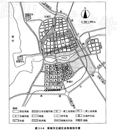 图2-1-6所示为某市25万人口的城市主城区总体规划示意图。