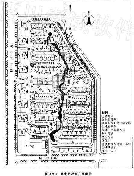 某市在城市主干路东侧一块平坦的空地上,拟建一个小区,规划实施方案如图2-9-4所示。