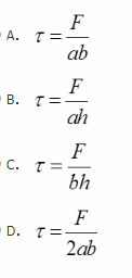 两根木杆用图示结构连接,尺寸如图所示,在轴向外力F作用下,可能引起连接结构发生剪切破坏的名义切应力是( )。