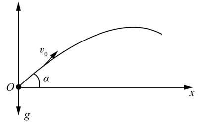 一炮弹以初速度v0和仰角α射出。对于下图所示直角坐标的运动方程为x=v0cosαt,y=v0sinαt-gt2/2,则当t=0时,炮弹的速度的大小为( )。