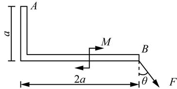 <p>直角构件受F=150N,力偶M=Fa/2作用,a=50cm,θ=30°,则该力系对B点的合力矩为( )。 <img s