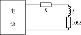 <p>将一个直电流源通过一个电阻R接在电感线图两侧,如图所示。如果U=10V时,I=1 A,那么,将直流电源设备换成交流电源设