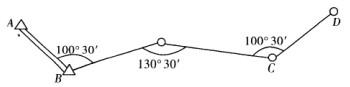 如图所示支导线,AB边的坐标方位角为αAB=125°30′30″,转折角如图,则CD边的坐标方位角αCD为()
