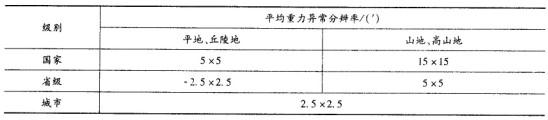 ③各级似大地水准面计算采用的格网平均重力异常分辨率应不低于下表的规定。