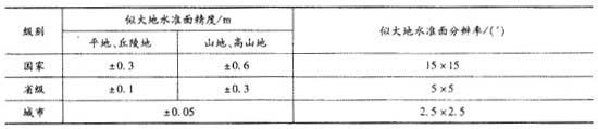 ③我国似大地水准面按范围和精度,分为国家似大地水准面、省级似大地水准面和城市似大地水准面。各级似大地水准面的精度和分辨率应不低于下表的规定。