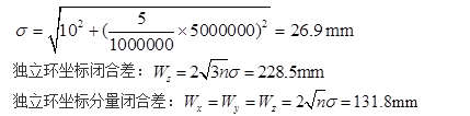 (2)独立闭合环坐标闭合差和各坐标分量闭合差(Wx、Wy、Wz)