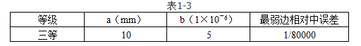 控制网采用三等GPS网,主要技术指标见表1-3。