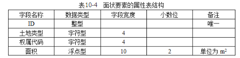 (2)面状要素的属性表结构(见表10-4)。