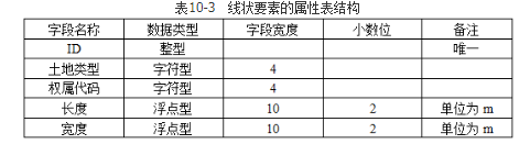 2.(1)线状要素的属性表结构(见表10-3)。