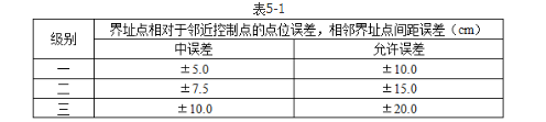 ⑤检查,相邻界址点间距误差应满足表5-1规定。