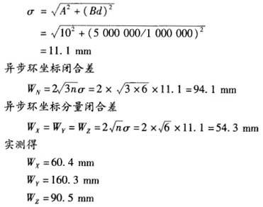 (2)计算该独立闭合环坐标与坐标分量的闭合差的限差值,并判定闭合差是否越限。