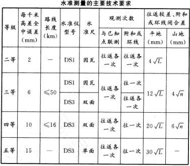 洞外的高程控制测量,宜采用水准测量方法复测。隧道两端的洞口水准点和必要的洞外水准点应组成闭合或往返水准路线。隧道高程控制测量的有关技术要求,应符合《工程测量规范》( GB 50026—2007)的有关规定见下表。水准测量的主要技术要求